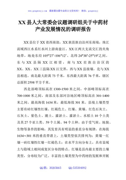 / XX县人大常委会议题调研组关于中药材产业发展情况的调研报告