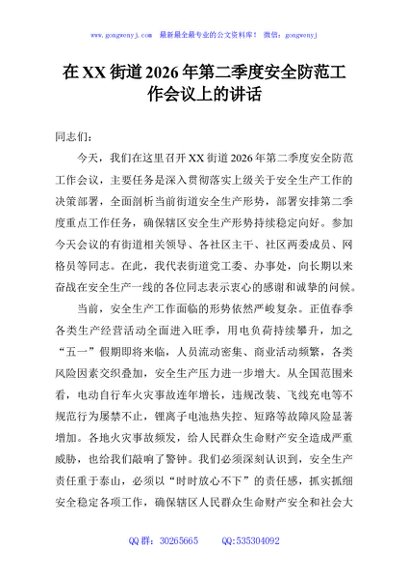 / 在XX街道2026年第二季度安全防范工作会议上的讲话