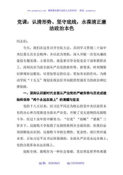 / 党课:认清形势、坚守底线,永葆清正廉洁政治本色
