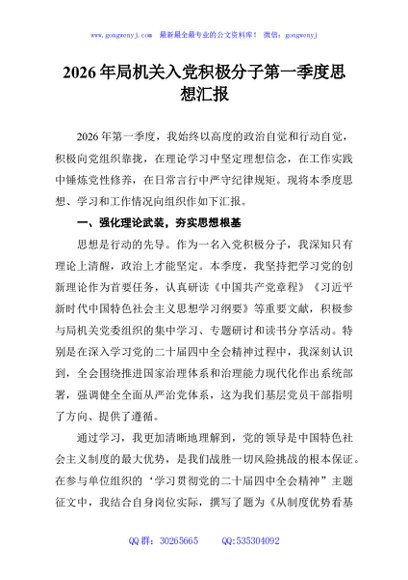 / 2026年局机关入党积极分子第一季度思想汇报