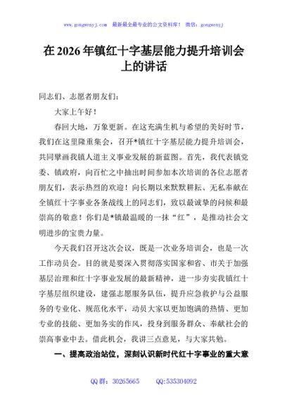 / 在2026年镇红十字基层能力提升培训会上的讲话