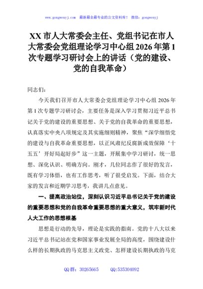 XX市人大常委会主任、党组书记在市人大常委会党组理论学习中心组2026年第1次专题学习研讨会上的讲话(党的建设、党的自我革命)