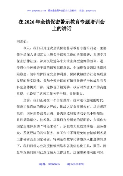 / 在2026年全镇保密警示教育专题培训会上的讲话