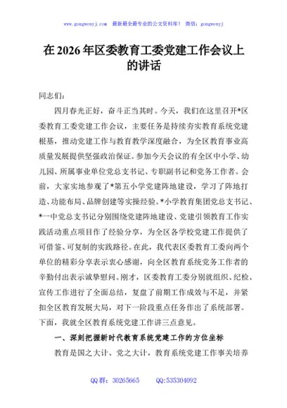 / 在2026年区委教育工委党建工作会议上的讲话
