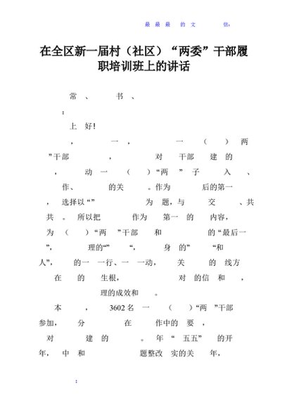 / 在全区新一届村(社区)“两委”干部履职培训班上的讲话