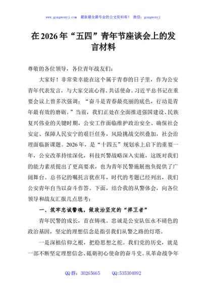 / 在2026年“五四”青年节座谈会上的发言材料