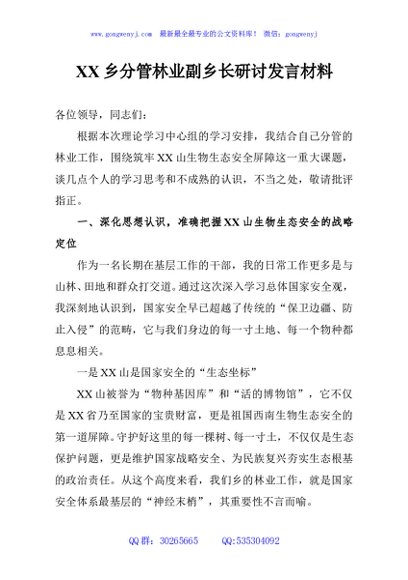 / XX乡分管林业副乡长研讨发言材料
