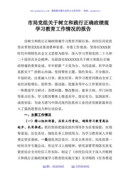 / 市局党组树立和践行正确政绩观学习教育工作情况的报告