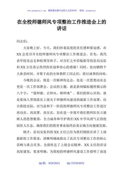 / 在全校师德师风专项整治工作推进会上的讲话