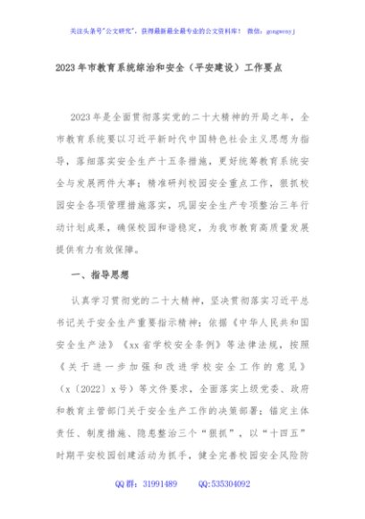 / 2023年市教育系统综治和安全(平安建设)工作要点
