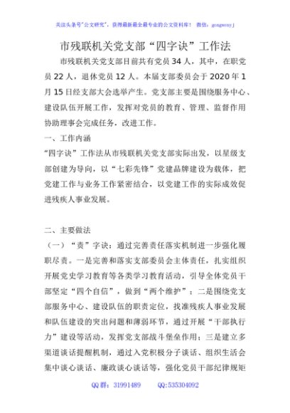 / 市残联机关党支部“四字诀”工作法(党建品牌)