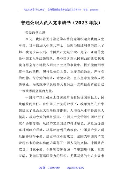 / 2023年普通公职人员入党申请书