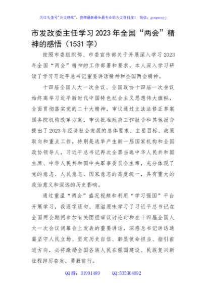/ 市发改委主任学习2023年全国“两会”精神的感悟