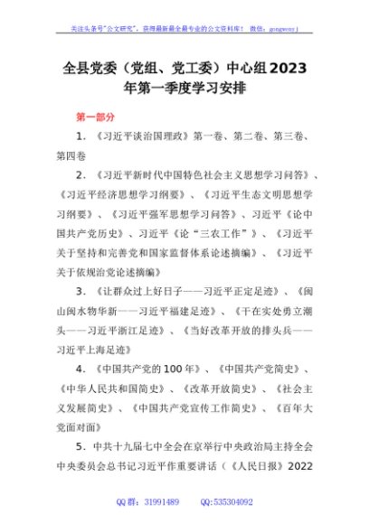 / 全县党委(党组、党工委)中心组2023年第一季度学习安排