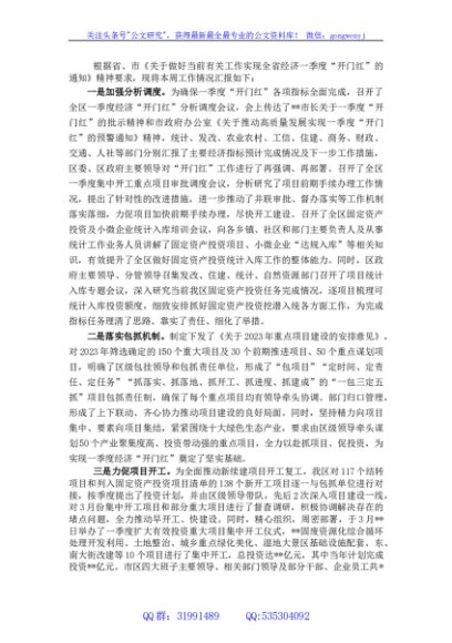 / 关于落实经济一季度“开门红”工作情况的报告