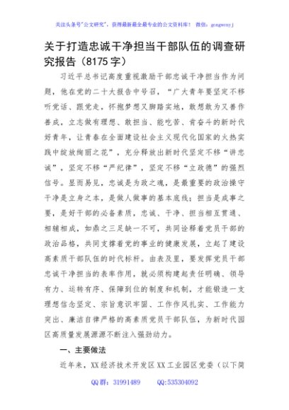 / 关于打造忠诚干净担当干部队伍的调查研究报告