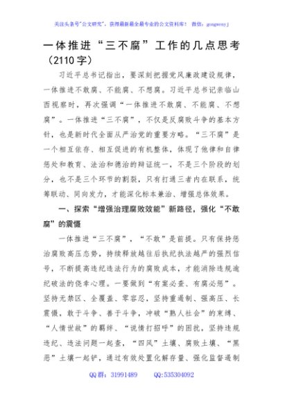/ 一体推进“三不腐”工作的几点思考