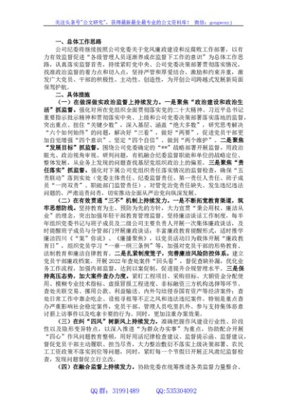 / 某国企纪委纪检2023年监察工作安排
