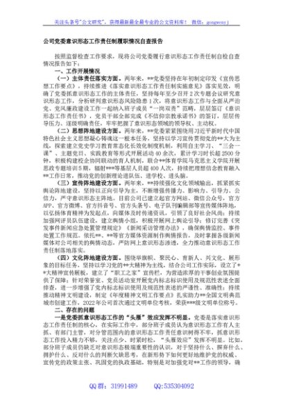 / 公司党委意识形态工作责任制履职情况自查报告