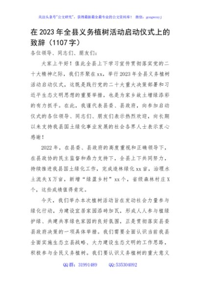 / 在2023年全县义务植树活动启动仪式上的致辞