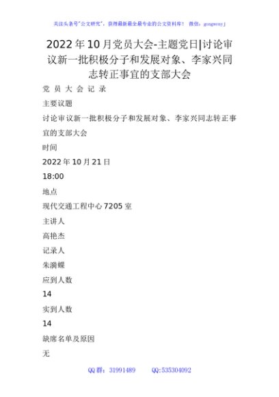 / 2022年10月党员大会-主题党日-讨论审议新一批积极分子和发展对象、李家兴同志转正事宜的支部大会