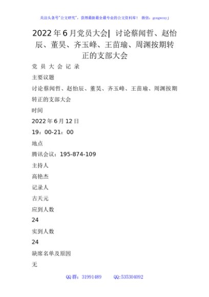 / 2022年6月党员大会- 讨论蔡闻哲、赵怡辰、董昊、齐玉峰、王苗瑜、周渊按期转正的支部大会