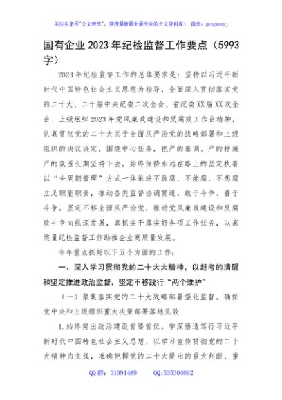 / 国企2023年纪检工作要点