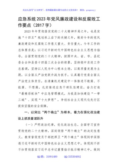 / 应急系统2023年党风廉政建设和反腐败工作要点