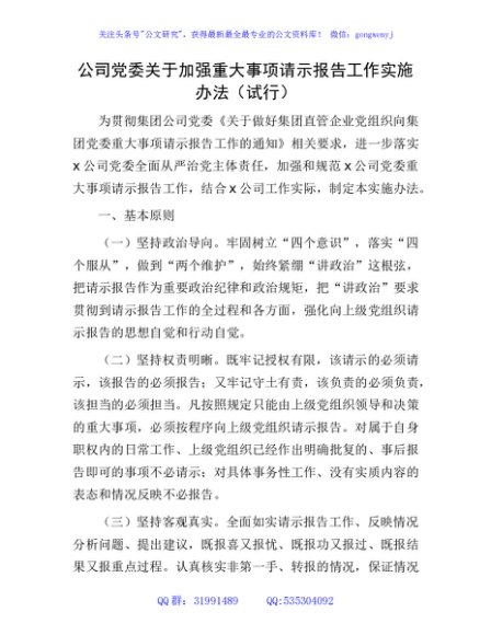 / 国企加强重大事项请示报告工作实施办法