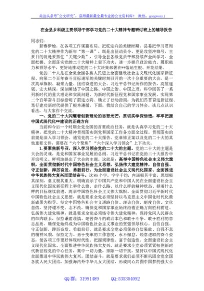 / 在全县乡科级主要领导干部专题研讨班上的辅导报告