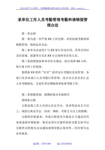 / 某单位工作人员考勤管理考勤和请销假管理办法
