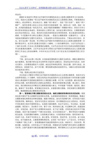 2023年主题教育第一次集中学习研讨主持词