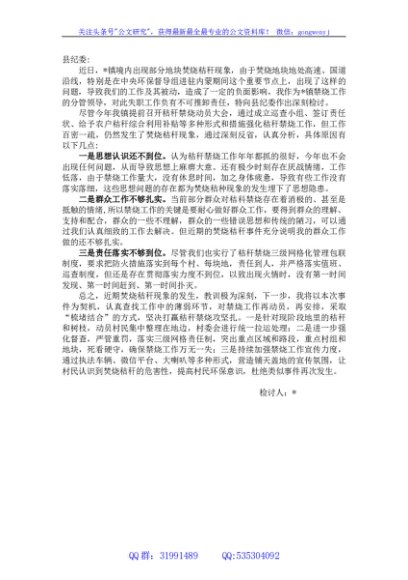 / 镇秸秆禁烧检讨书