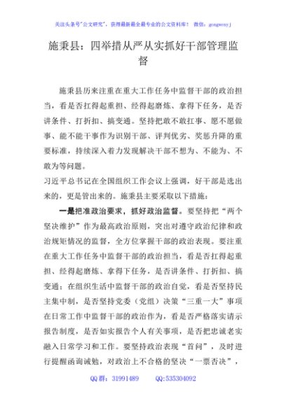 / 干部管理监督经验材料(县区)
