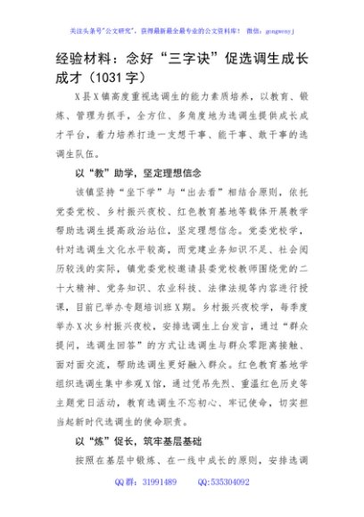 / 经验材料:念好“三字诀”促选调生成长成才