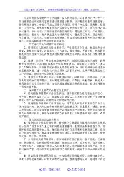 / 县2023年巩固拓展脱贫攻坚成果同乡村振兴有效衔接工作要点