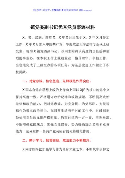 / 镇党委副书记优秀党员事迹材料