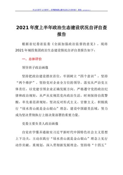 / 2021年度上半年政治生态建设状况自评自查报告