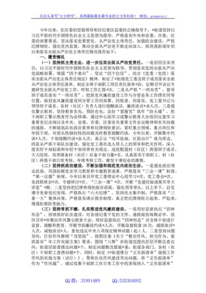 / 街道党工委落实全面从严治党主体责任报告
