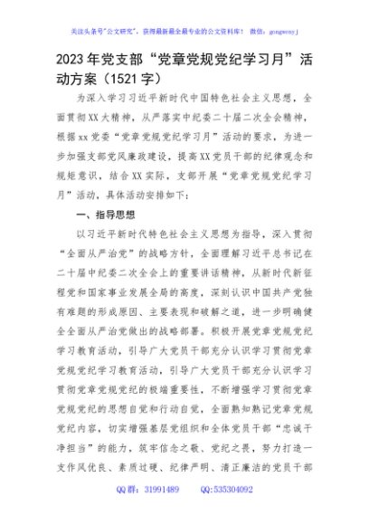 / 2023年党支部“党章党规党纪学习月”活动方案