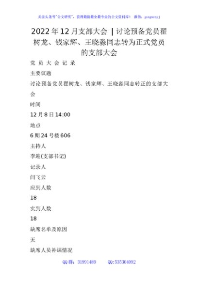 2022年12月支部大会 - 讨论预备党员翟树龙、钱家辉、王晓淼同志转为正式党员的支部大会