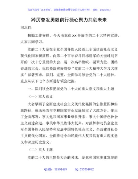 / 二十大宣讲稿:踔厉奋发勇毅前行 凝心聚力共创未来8700字