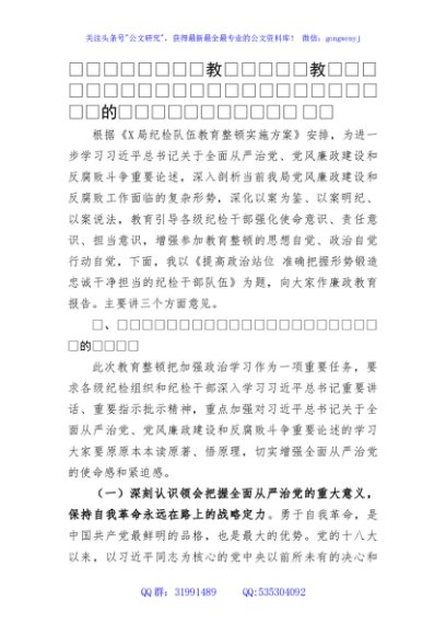 / 纪检监察干部队伍教育整顿廉政教育报告