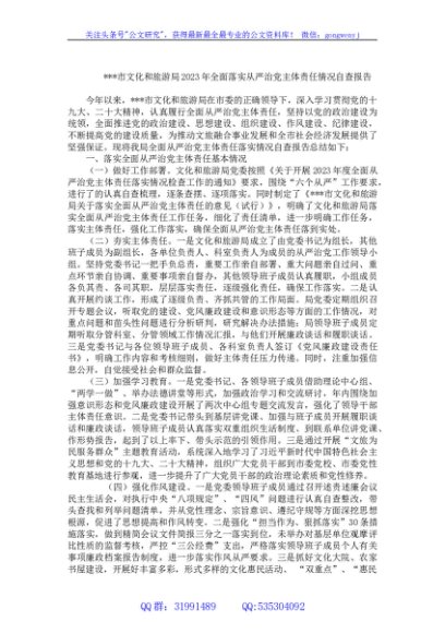 / 市文化和旅游局2023年全面落实从严治党主体责任情况自查报告