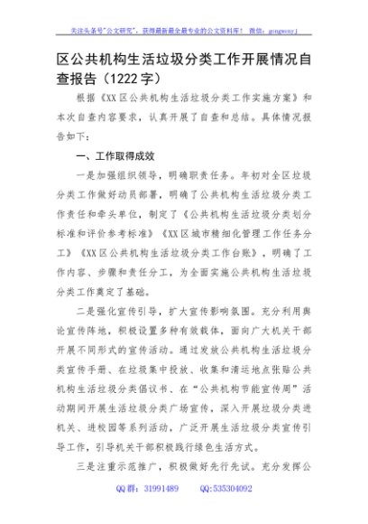 / 区公共机构生活垃圾分类工作开展情况自查报告