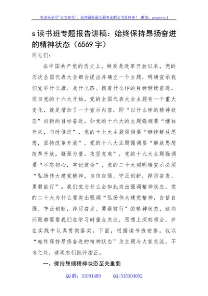 / 主题教育读书班专题报告讲稿:始终保持昂扬奋进的精神状态
