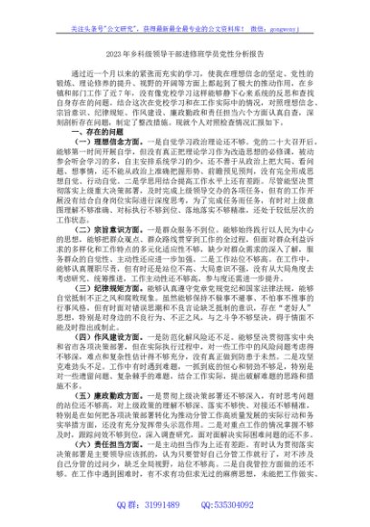 / 2023年乡科级领导干部进修班学员党性分析报告
