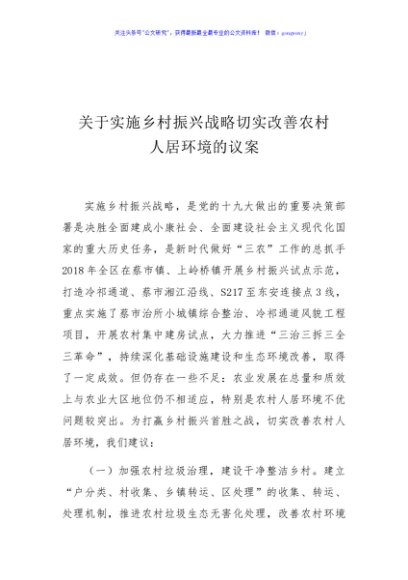 / 关于实施乡村振兴战略切实改善农村人居环境的议案