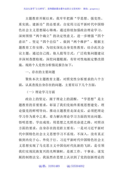 / 主题教育个人党性分析报告(六个方面检视剖析5100字)