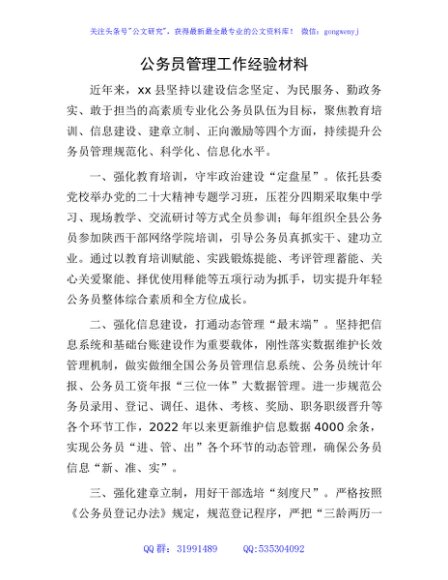 / 公务员管理工作经验材料